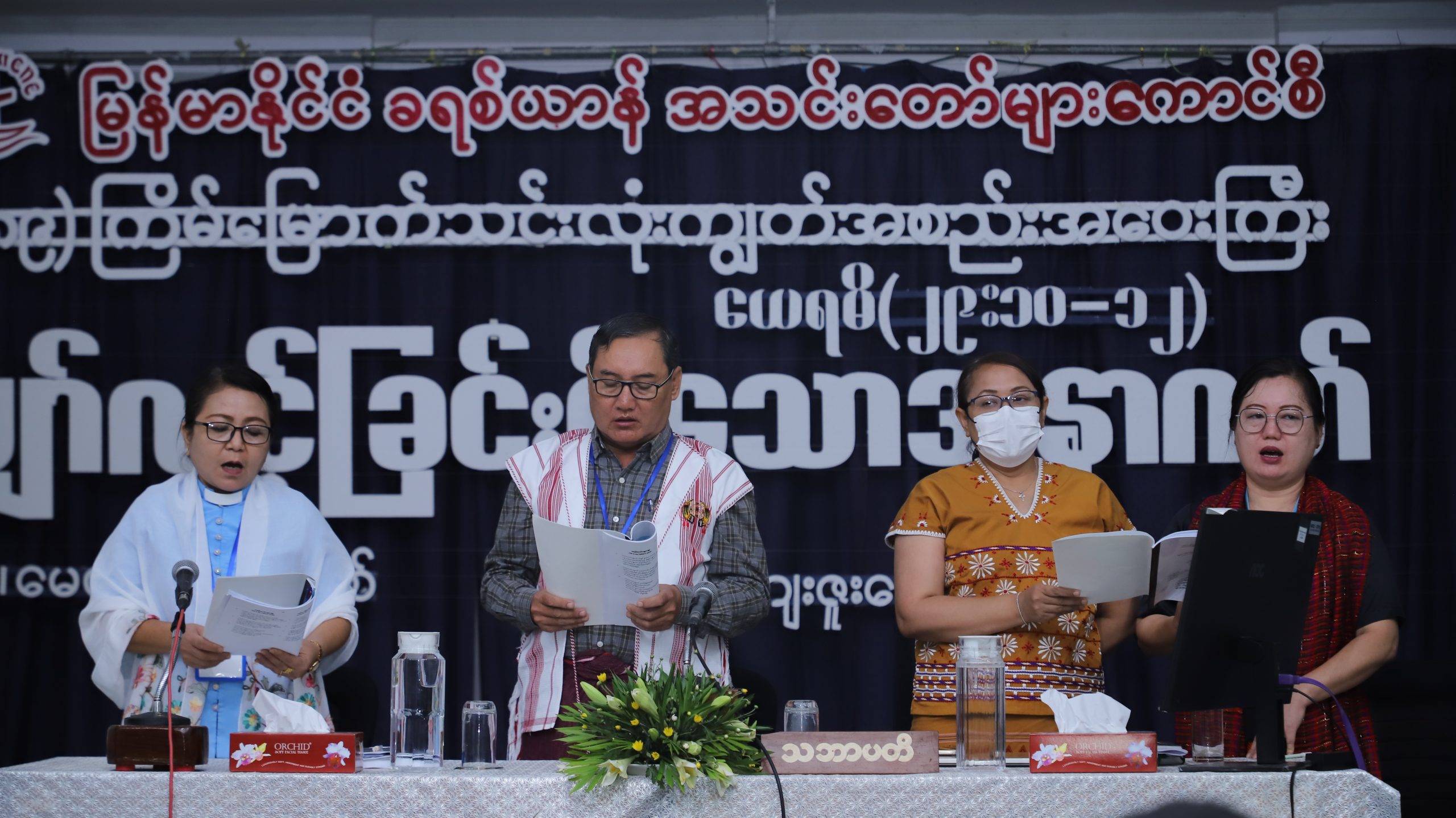 (၈၉) ကြိမ်မြောက် သင်းလုံးကျွတ်အစည်းအဝေးကြီး၏ တတိယနေ့ မနက်ပိုင်း ဝတ်ပြုကိုးကွယ်ခြင်းအစီအစဉ်၏ မှတ်တမ်းဓါတ်ပုံတချို့ကို တင်ဆက်လိုက်ရပါသည်။