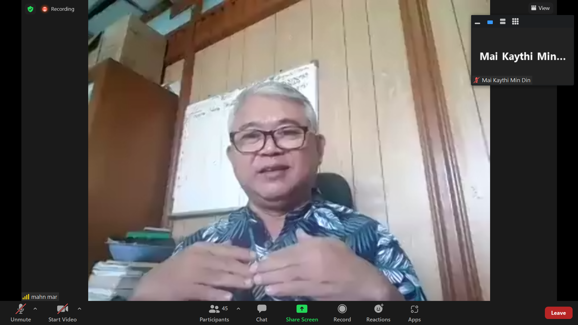 Myanmar Council of Churches, Mission, and Ecumenism Department was able to conduct one-month training from 1st October from 29 October 2021 with ZOOM under the Main Topic of  “Interfaith Dialogue Training Course 1st Batch 2021”. There were (31) participants from (11) Regional Council.  The closing ceremony was on October 29 with ZOOM and The Chairman of Mission and Ecumenical Work, Rev. Vazilai gave the Certificate to the participants.